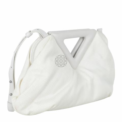 Item shows minimal wear. There is yellow marks on the bottom thin straps, it looks like glue marks that seeped through the fabric. There is light warping on shoulder strap and minor wear mark on inner area. Faint yellow mark and pink mark on front.| Color: | White |
